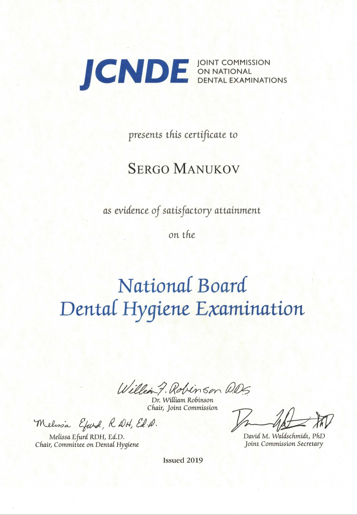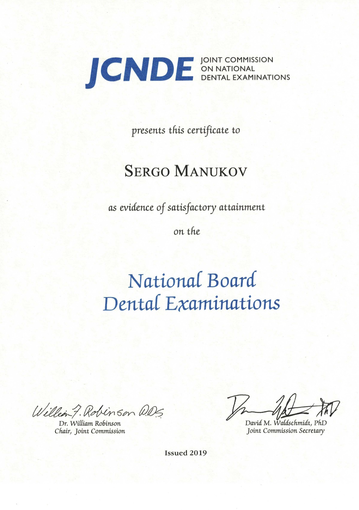 წარმატებით გაიარა ლიცენზირებული გამოცდები შეერთებულ შტატებში პირველადი სამედიცინო დახმარების, სტომატოლოგიისა და სტომატოლოგიური ჰიგიენის სპეციალობებში (BLS, JCNDE 2019 NBDE 1, NBDE 2, NBDHE).